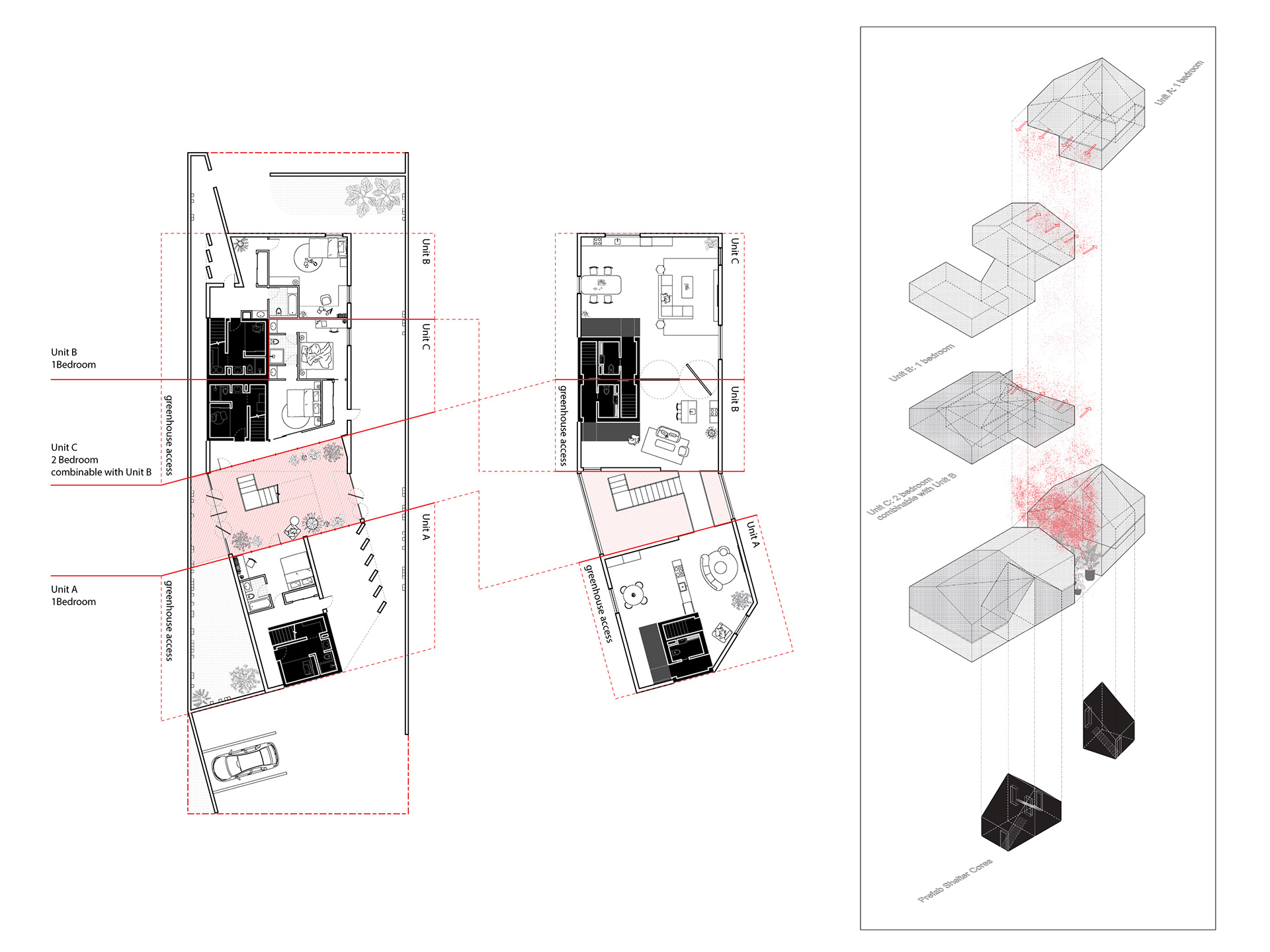 Program: Communal Housing with On-Site Shelter and Revised Air Handling System, 3 Units on Single Family Lot
