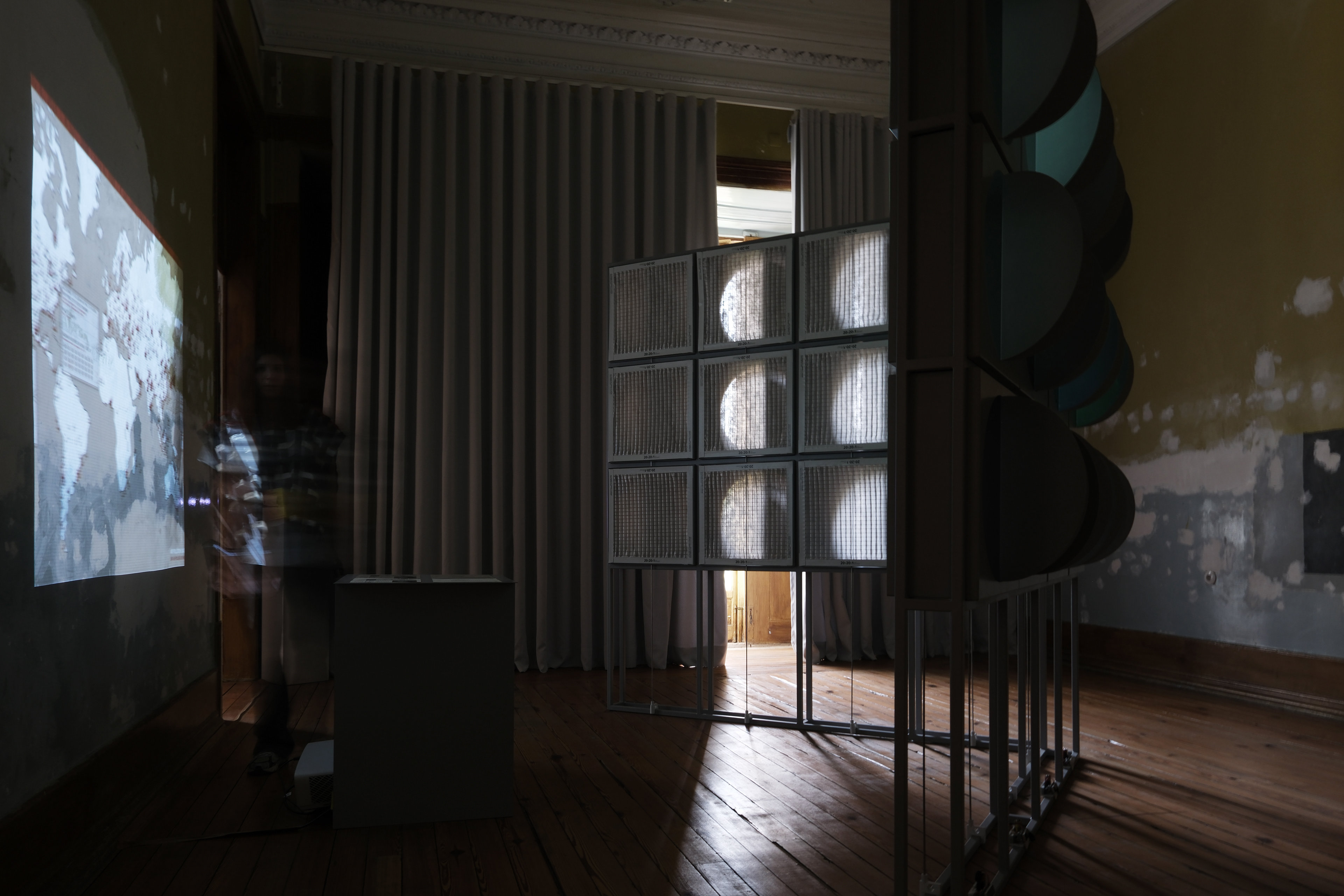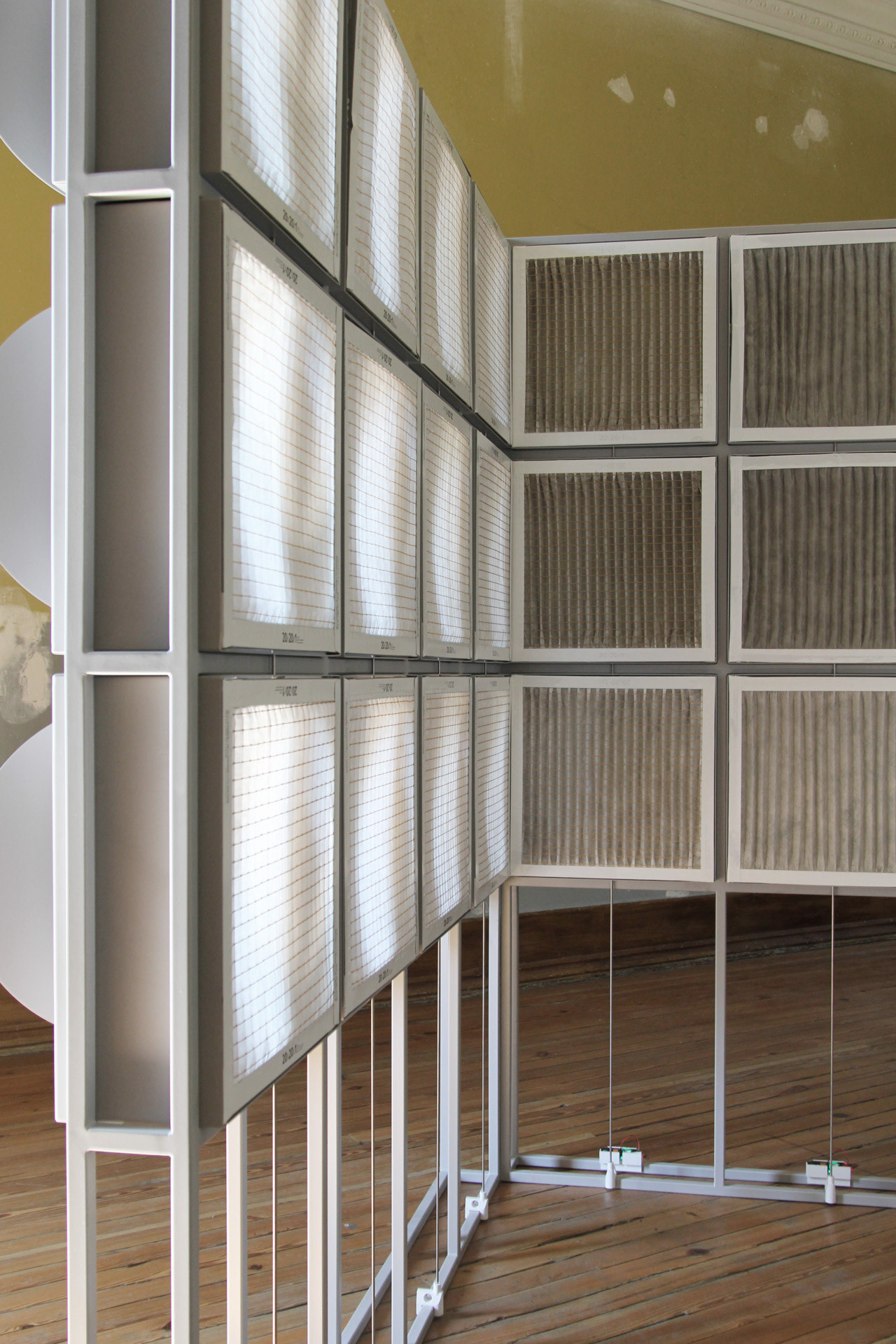 Titled “The Weight of Clean Air,” this project investigates the apparatus of air filtration and visualizes the uneven accessibility to such technology at a planetary scale. To do so, HEPA filters—a standard component in HVAC systems in contemporary architecture in the West—are used as both research subjects and display mediums.